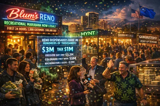 Reno's early participants in the recreational program outperformed expectations, with industry leaders like Will Adler of the Sierra Cannabis Coalition reporting exceptional per-dispensary sales. Blum's Reno location alone served 1,000 customers and earned $100,000 in the first 24 hours from midnight Saturday, surpassing its three Las Vegas sites combined at $90,000 despite fiercer competition there.